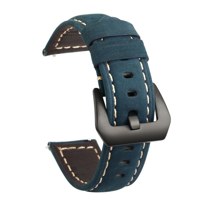 Curea piele naturala, compatibila Huawei Watch Huawei Watch GT4|GT3|GT3|GT2 46mm|GT 2e|Galaxy Watch 3 45mm, Albastru Verzui