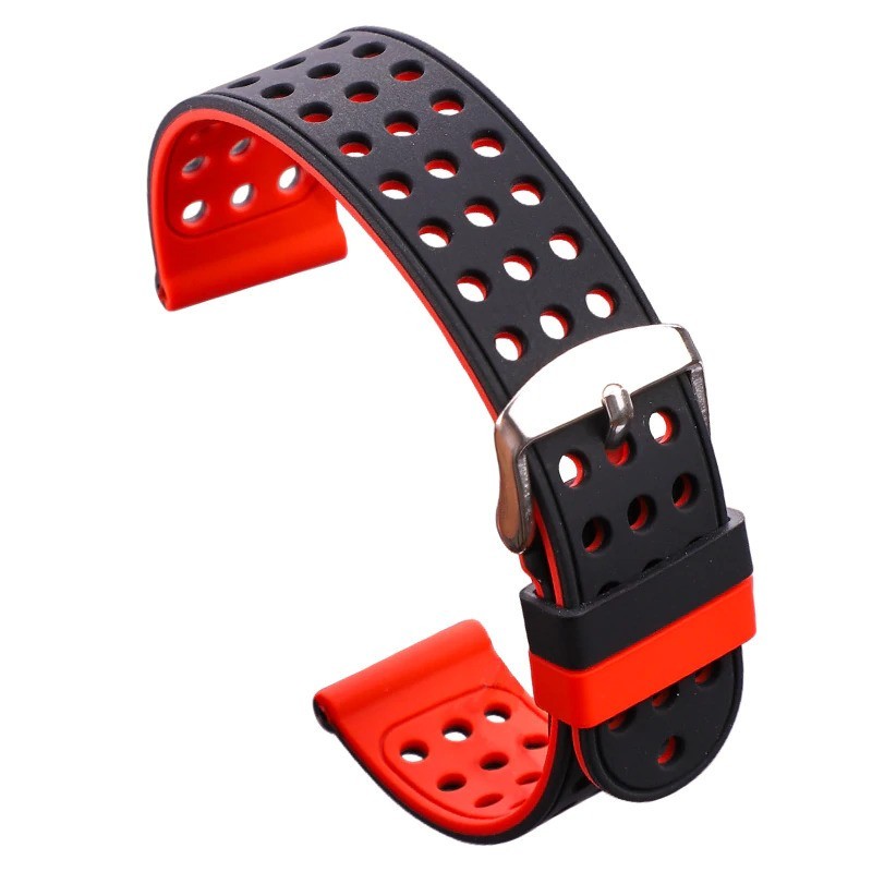 Curea silicon cu doua fete compatibila Huawei Watch Huawei Watch GT4|GT3|GT3|GT2 46mm|GT 2e|Galaxy Watch 3 45mm Negru/Rosu