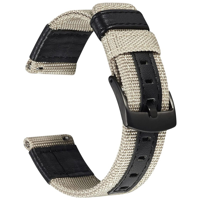 Curea textila, compatibila Huawei Watch Huawei Watch GT4|GT3|GT3|GT2 46mm|GT 2e|Galaxy Watch 3 45mm, Black Beige