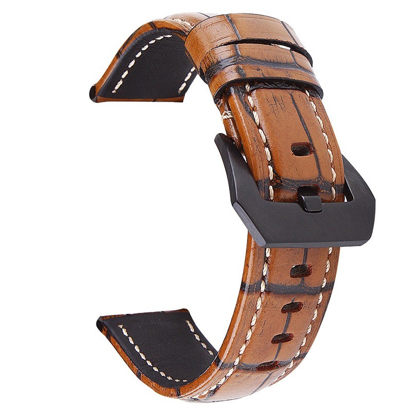 Curea din piele naturala, compatibila Huawei Watch Huawei Watch GT4|GT3|GT3|GT2 46mm|GT 2e|Galaxy Watch 3 45mm, Maro/Negru